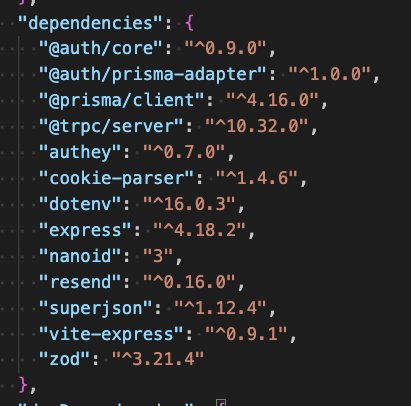 My new combination: ESM, TypeScript, Vite-Express, Auth.js (prev. NextAuth), tRPC, zod, Prisma, Resend, React, Tailwindcss, Jotai Yeah, no RSC 😅